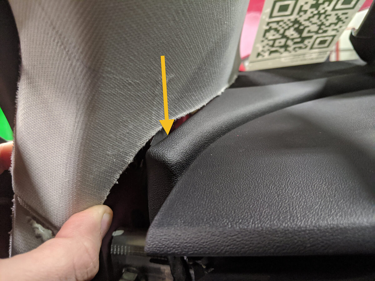 Note1x connector, Lift front edge of seat cushion upward to release foam from frame