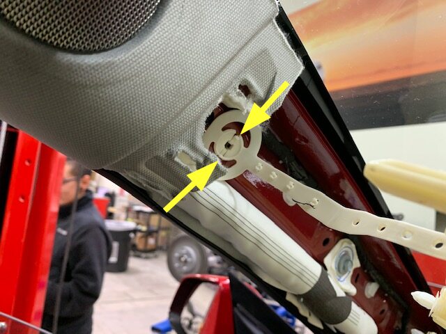Note3x clips, Pull inside of the upper portion of upper A-pillar, Remove 3x tether hooks by twisting and pulling away from housing, Then pull upper A-pillar upward to remove