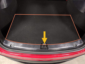 Release top edge of LH trunk side trim and disconnect 12V outlet and trunk switch connectors