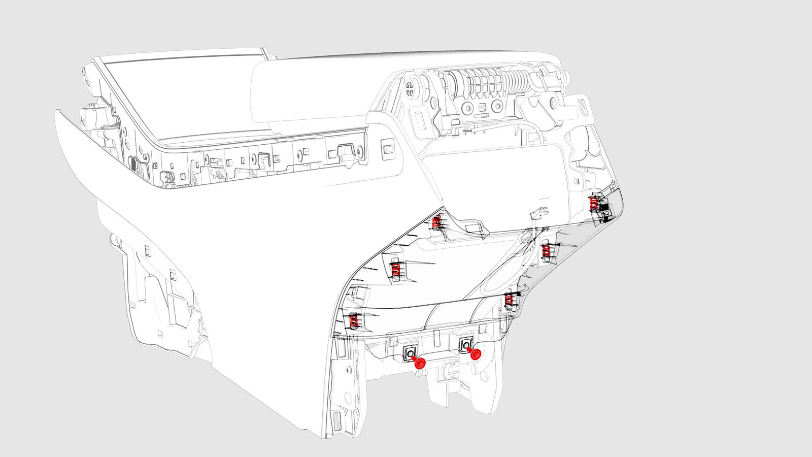 | Bolts that attach the center console end panel to the center console |