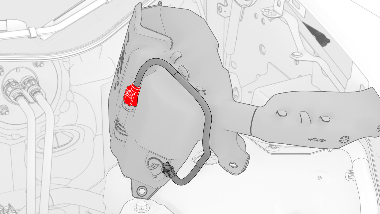 - Connect the electrical harness to the windshield washer pump connector and level sensor connector.
