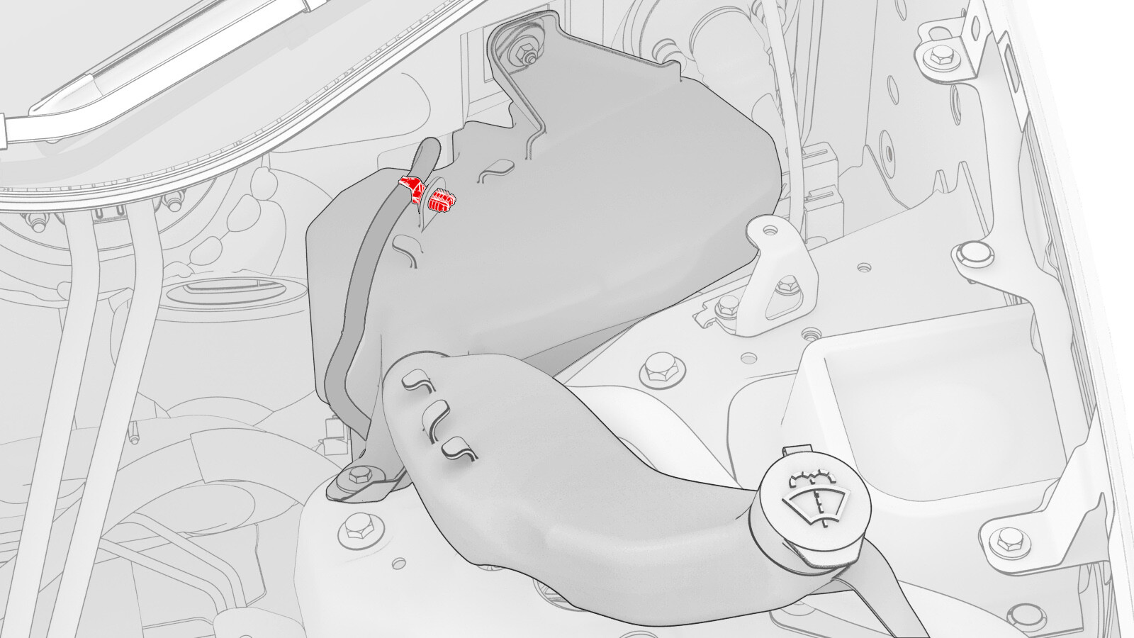 - Fasten the clip that attaches the electrical harness to the windshield washer reservoir.