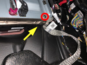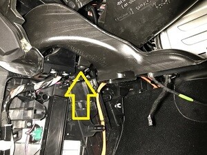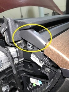 NoteUse caution during installation due to minimal clearance between shroud and passenger airbag connectors and harness