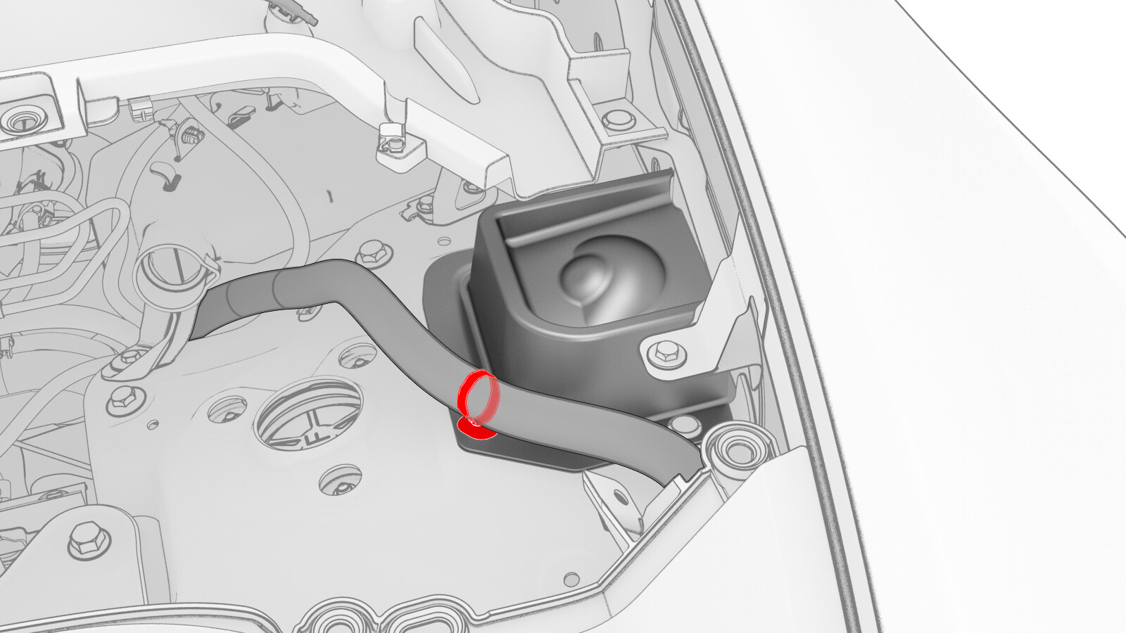 - Release the clips that attach the LH shock tower cover to the vehicle, and then remove the cover from the vehicle.