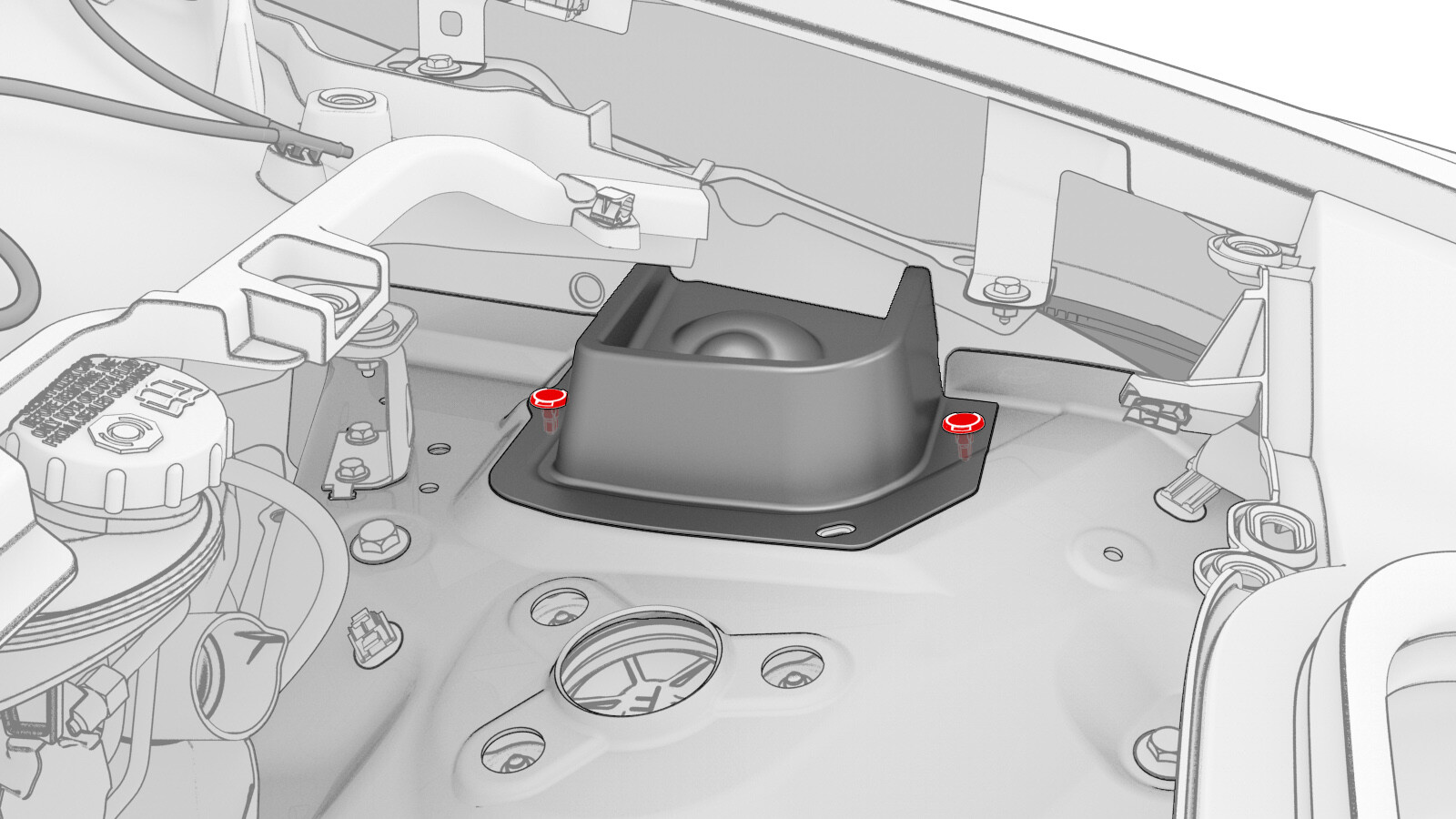 | Bolt that attaches the underhood storage unit to the washer fluid reservoir neck |