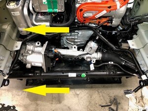 | LH and RH bolts (x2) that attach the cooling fan module assembly to the front support beam |