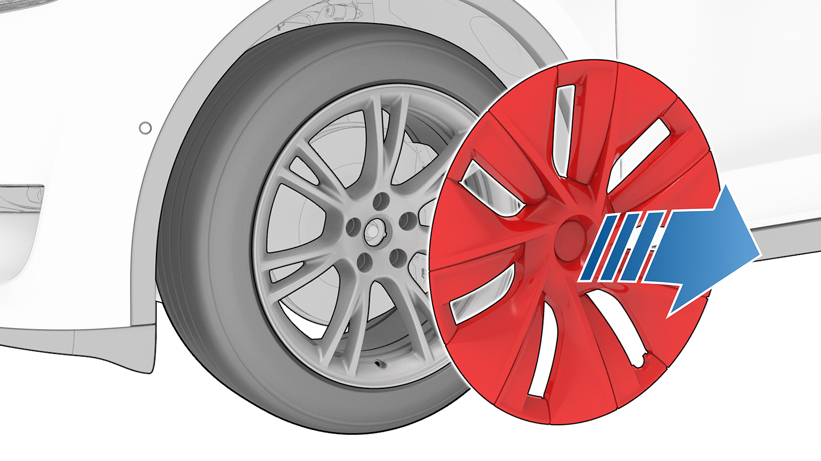 - Gently pull the wheel cap with both hands to release the clips that attach the wheel cap to the wheel.