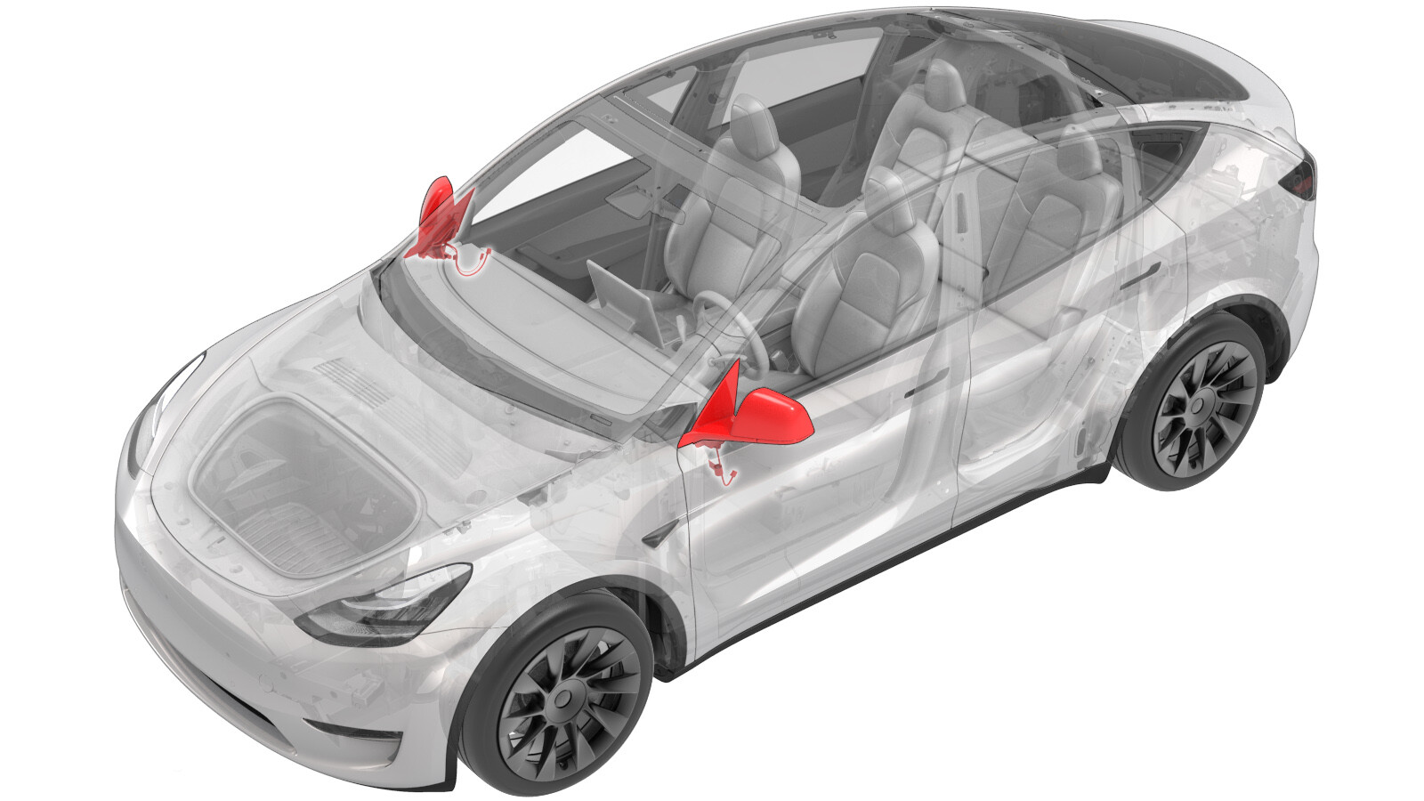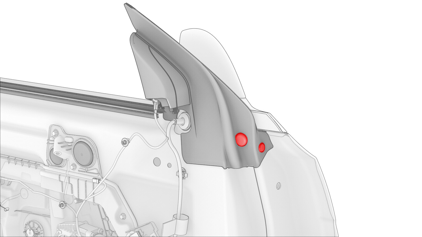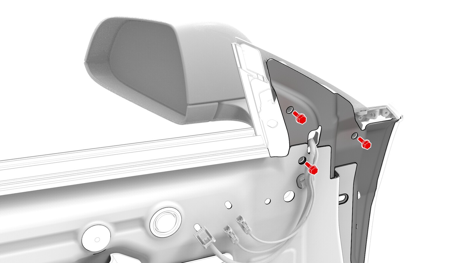 | Bolts that attach the LH door mirror to the door |