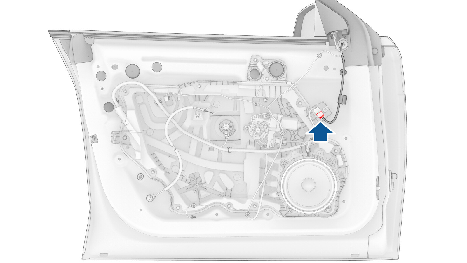 - Release the clip that attaches the window electrical harness to the door.