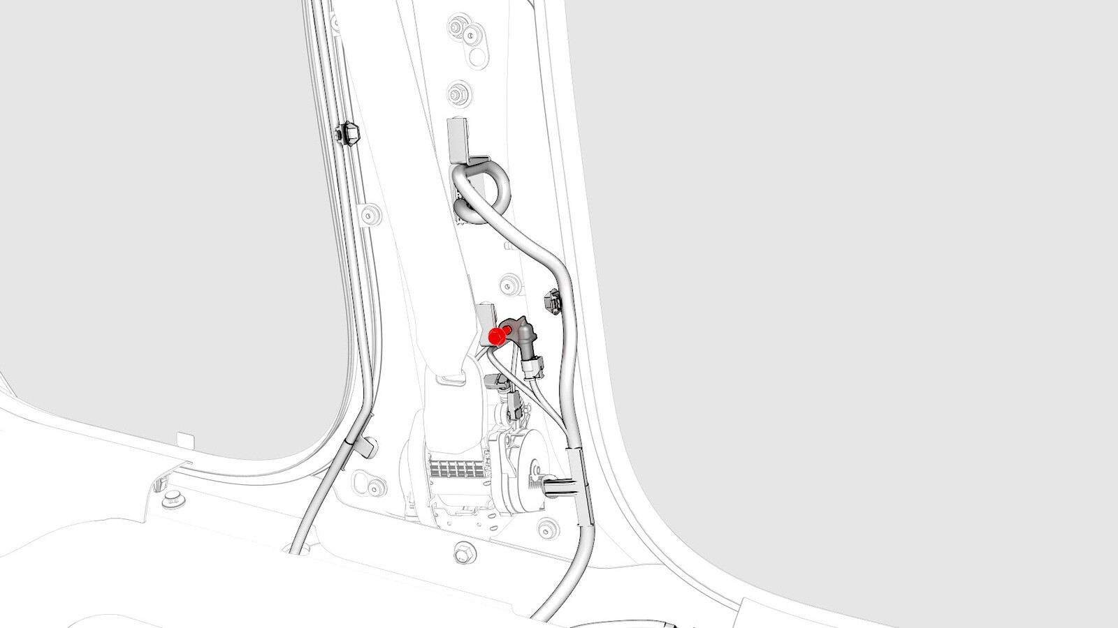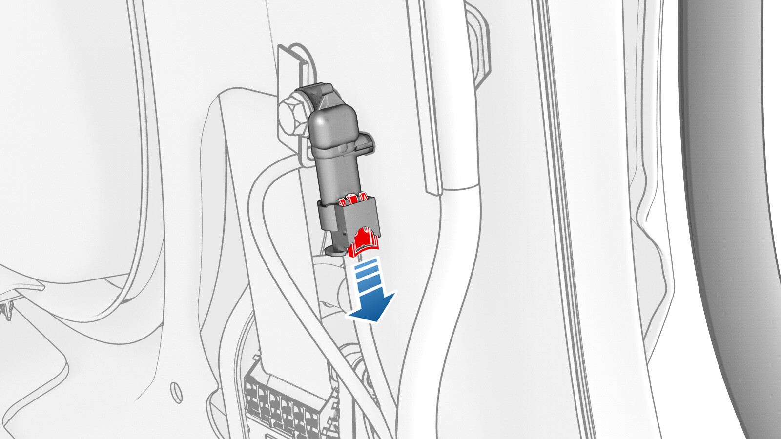 - Pull the red locking tab away from the B-Pillar accelerometer connector, and then disconnect the connector.