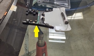 - Use a heat gun on the outside of windshield to melt the adhesive. Gently pry the temperature and humidity sensor up as heat is applied. Angle the front portion of the sensor upward and lift it out over the plastic alignment pin and bypass the plastic components.