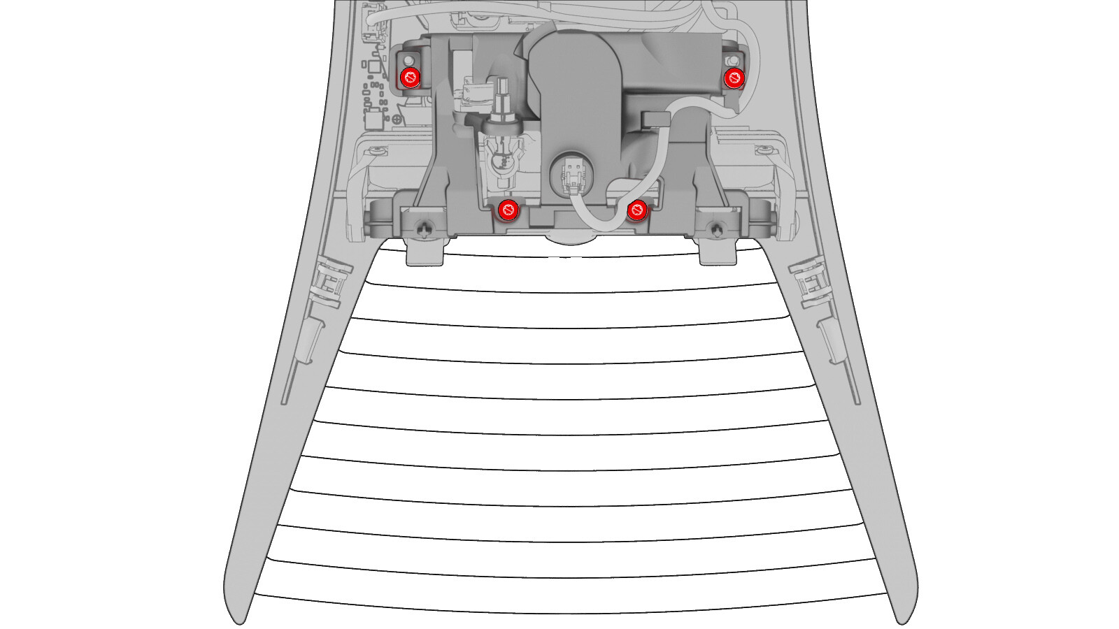 - Remove the screws (x4) that attach the forward facing camera assembly to the windshield bracket, and then release the assembly from the bracket.