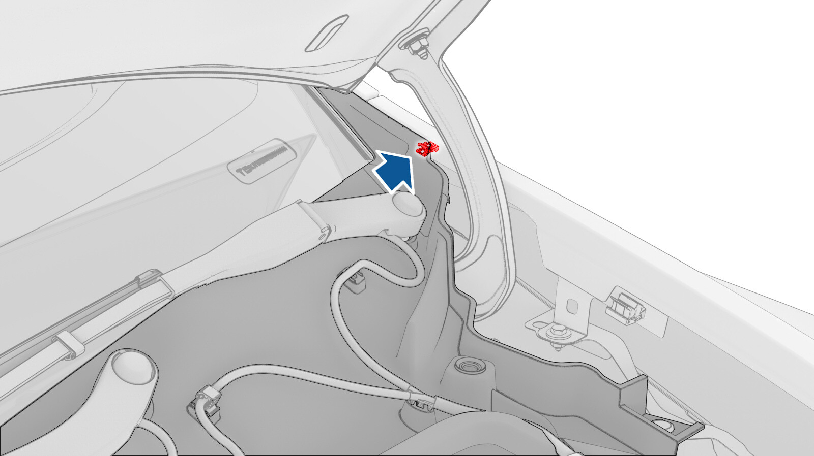 - If present, install the clip that attaches the electrical harness to the pedestrian warning speaker assembly.