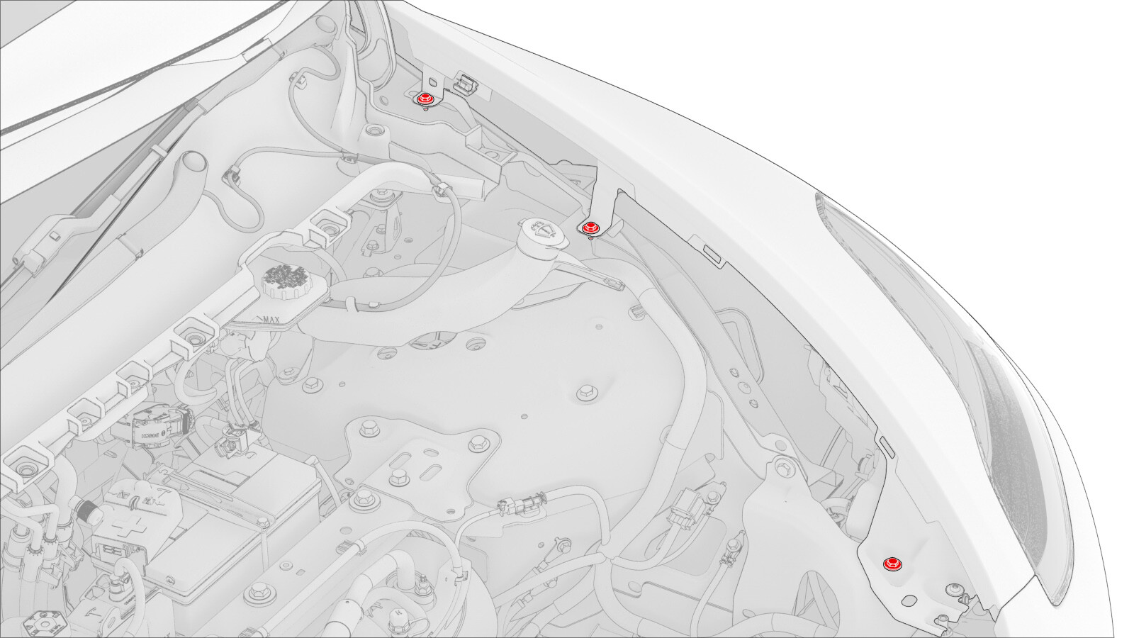 - With an assistant, position the front fascia onto the vehicle. and then fasten the clips (x8).
