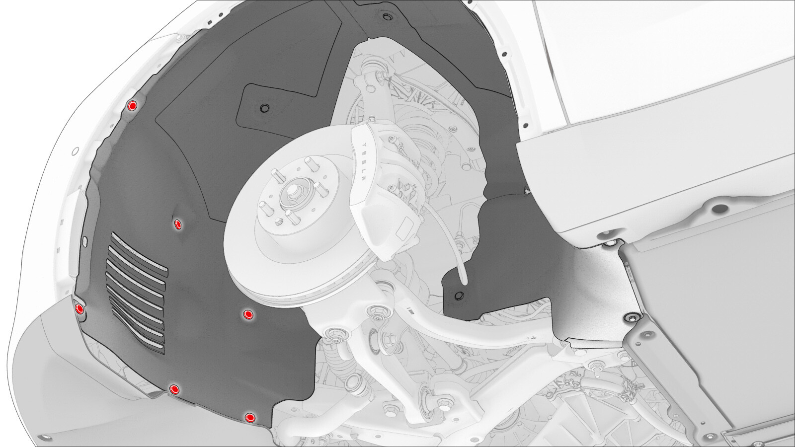 | Bolt that attaches the LH front wheel liner to the HV battery |