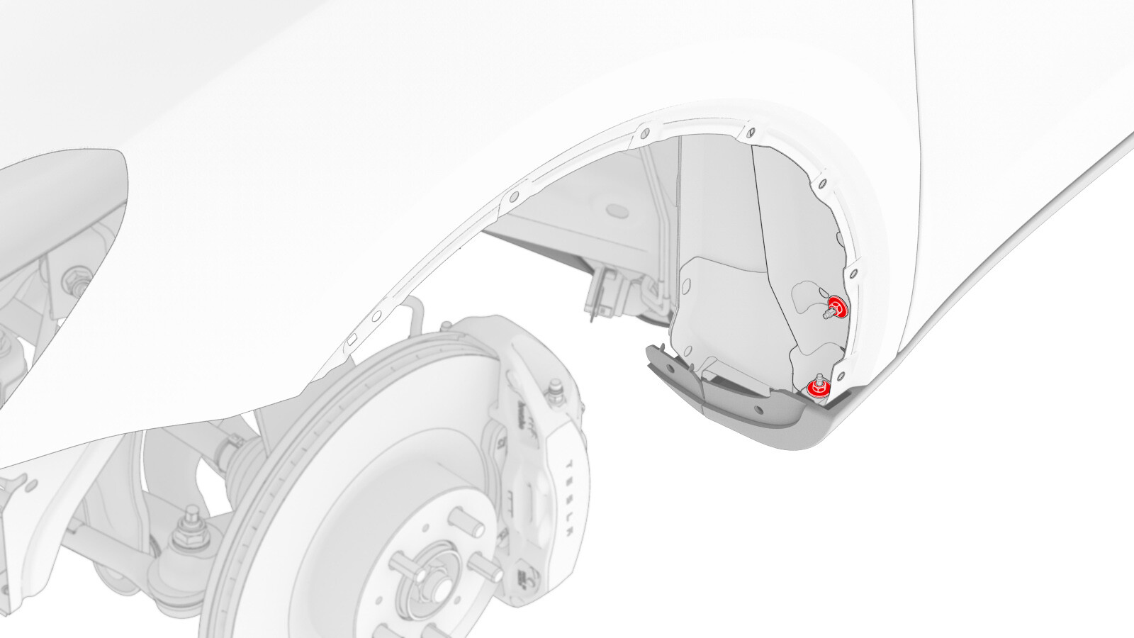 - Remove the clips (x6) that attach the front of the RH front wheel liner to the vehicle.