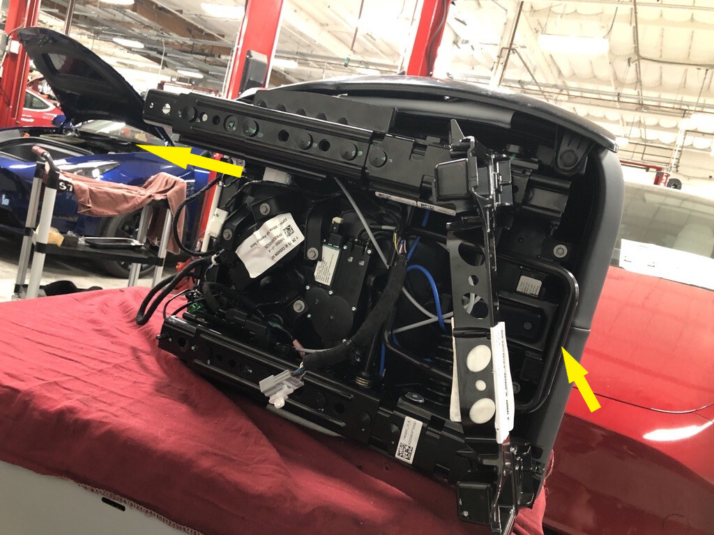 With assistance, remove the RH 2nd row seat podium from the seat