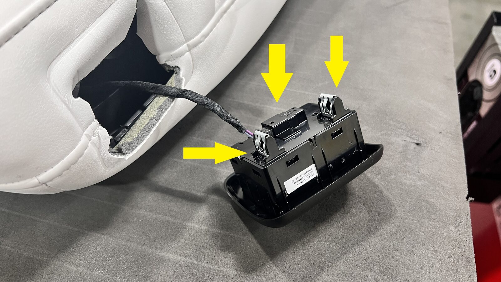 Note1x connector, 2x clips, Using plastic trim tool pry the top of the switch away from 20 back panel to ease removal