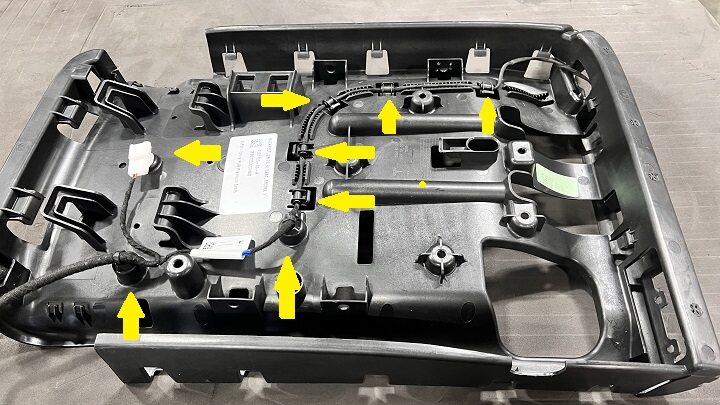 Install wiring harness to backrest shell