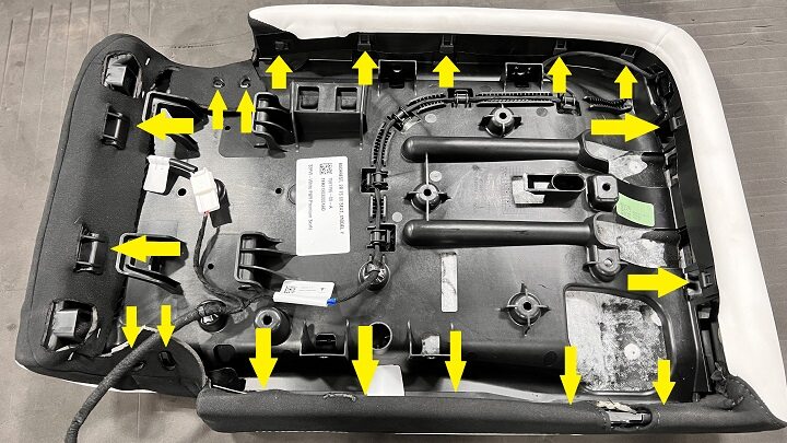 Remove push clips for 2nd row 60 bottom seat pan