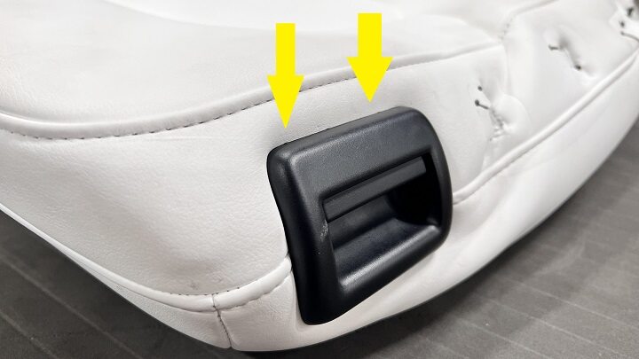 Note2x clips, Remove push clips from front of seat pan