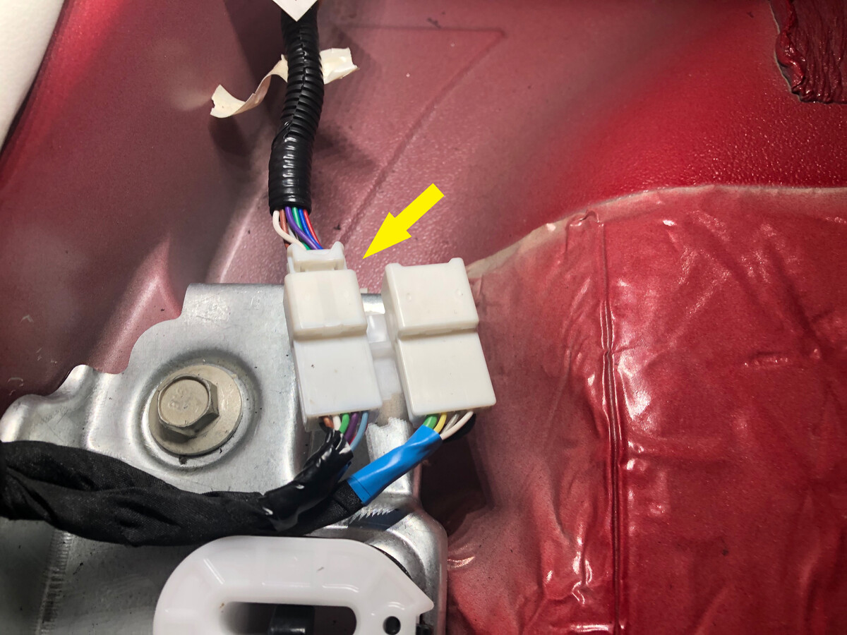 - Disconnect the 3rd row seat frame harness electrical connector.