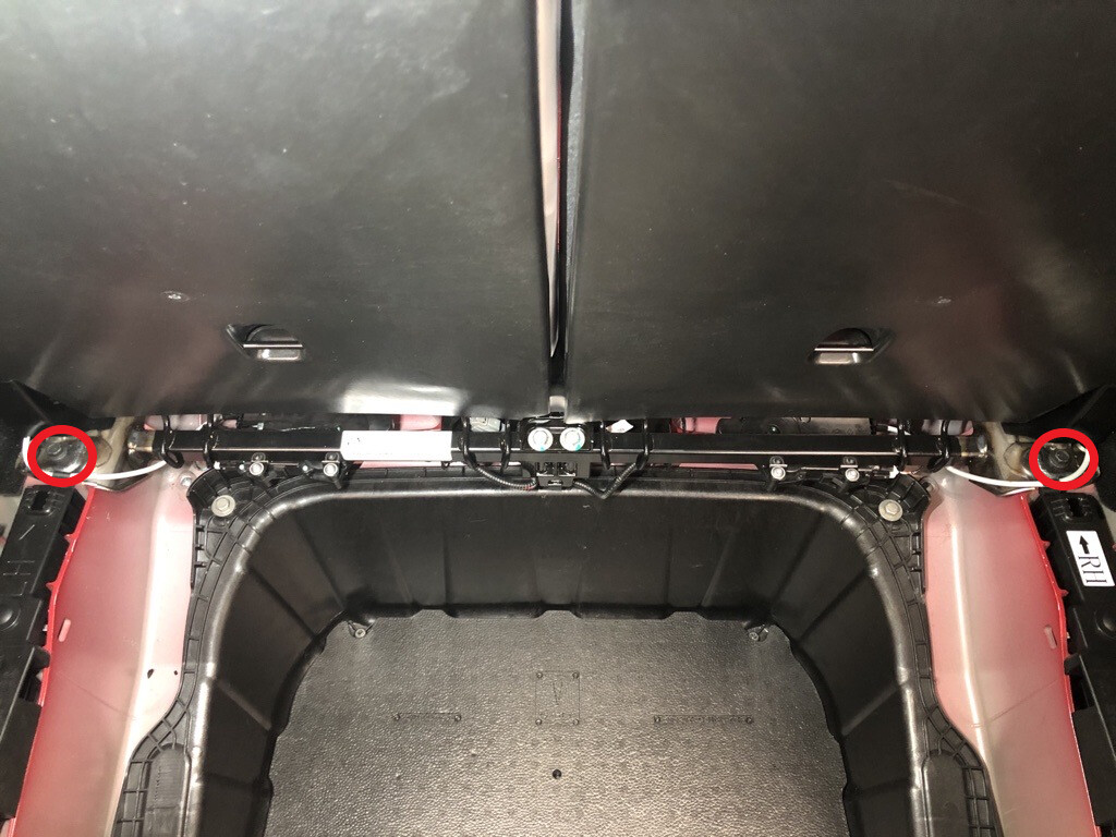 bolts that attach the LH 3rd row seat back assembly to the vehicle, and then