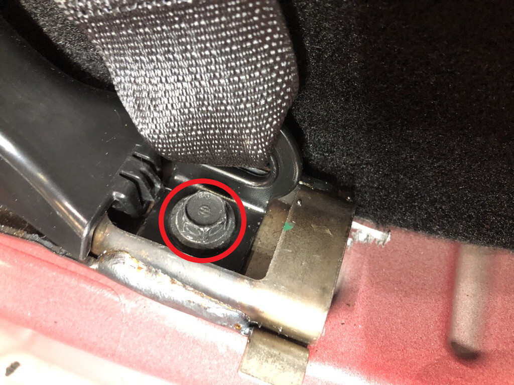 that attaches the 3rd row RH seat belt retractor to the seat frame