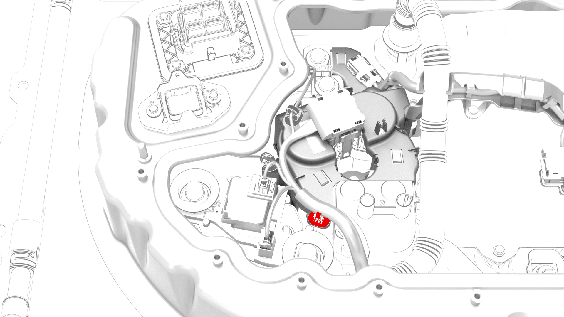 - Install the clip that attaches the HV battery ancillary bay harness to the HV battery fast charge contactor.