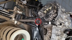 - Release the clip that attaches the rear drive unit ground strap to the subframe.