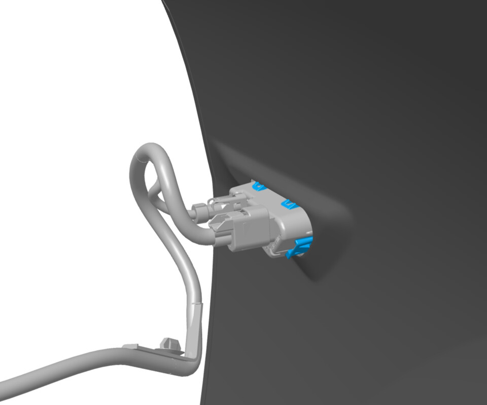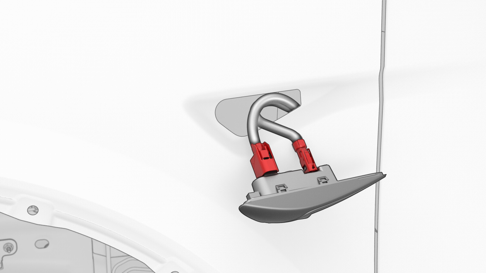 - Disconnect the electrical harness from the LH front side repeater light connectors (x2), and then remove the light from the vehicle.