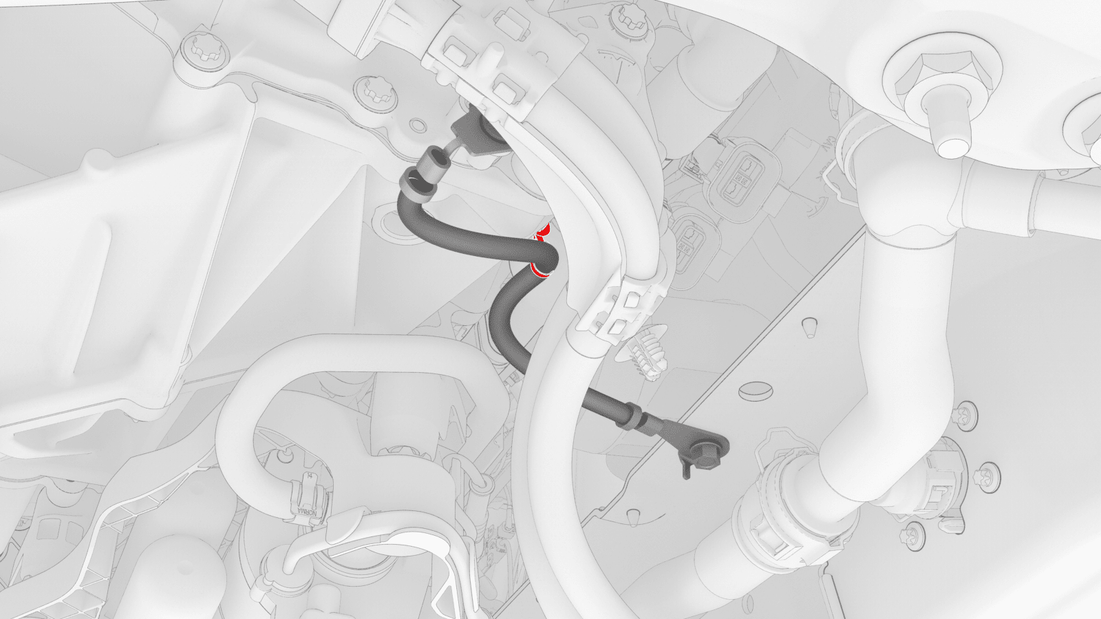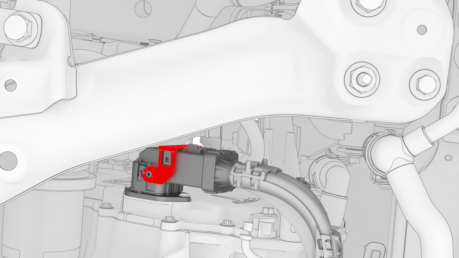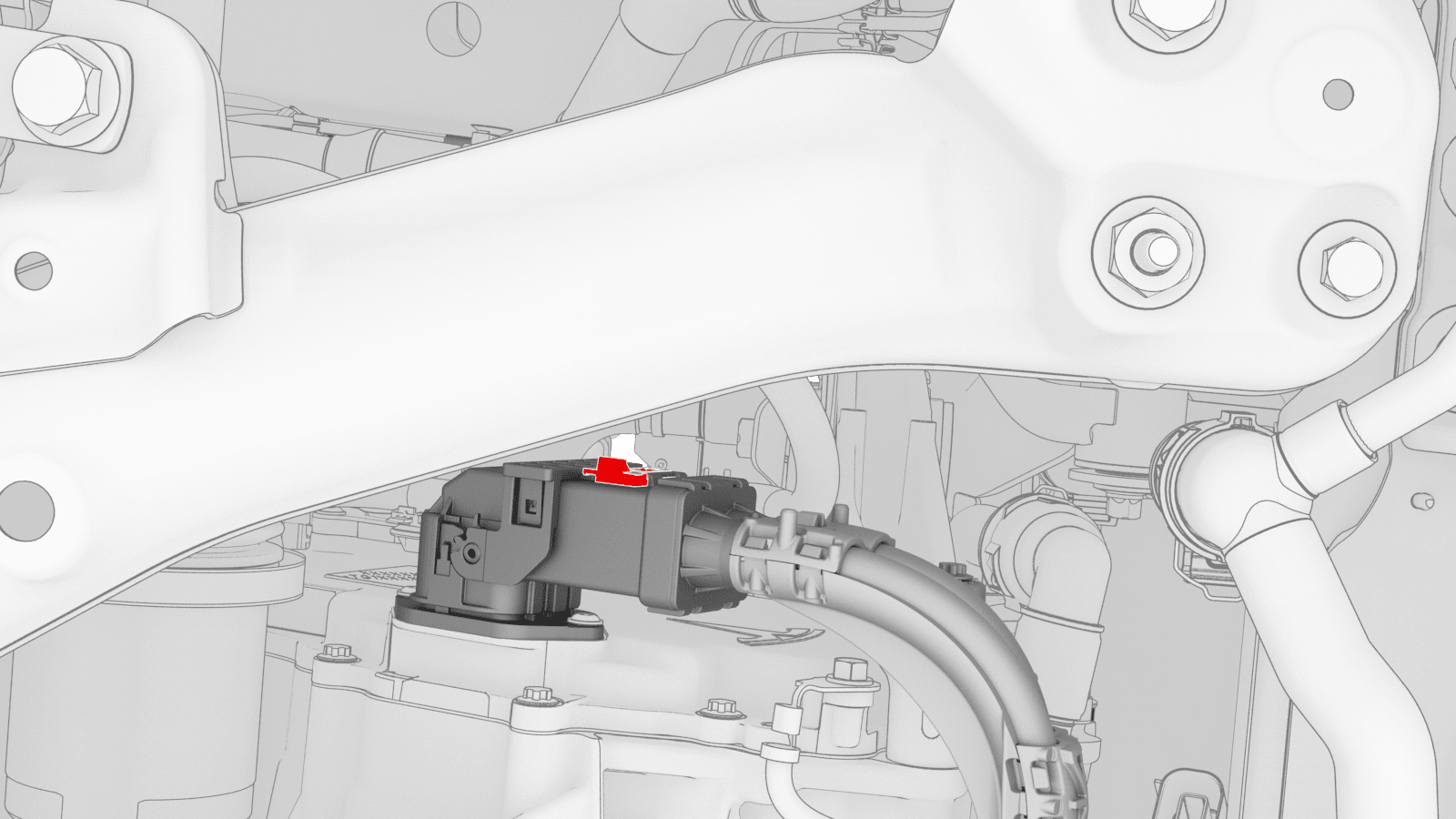 - Slide the red release tab to unlock the front drive unit HV harness connector.
