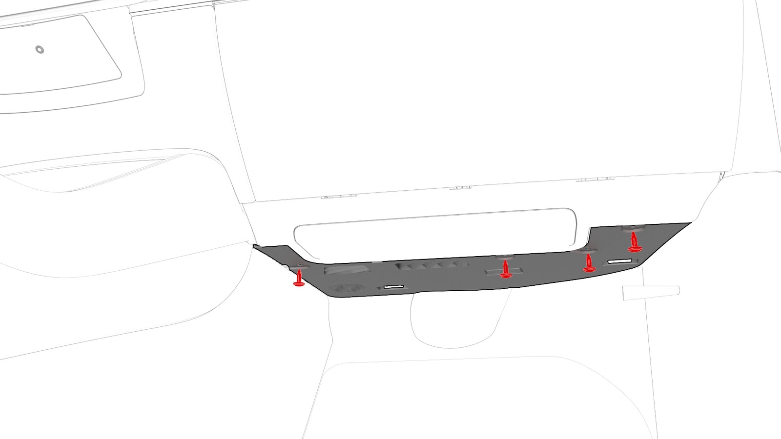 - Release the clips that attach the passenger footwell cover to the vehicle.