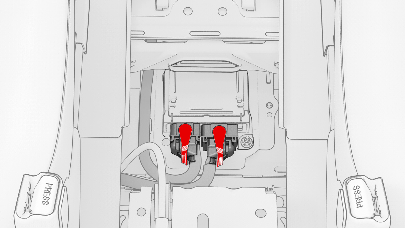- Release the locking levers, and then disconnect the electrical harness from the restraint control module.