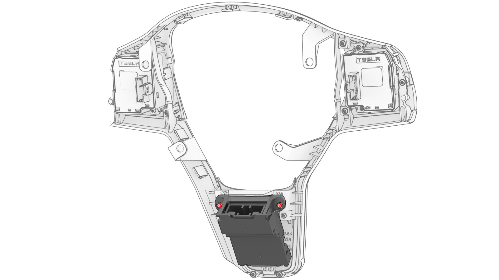 | Screws (x2) that attach the steering wheel controls ECU to the bright surround |