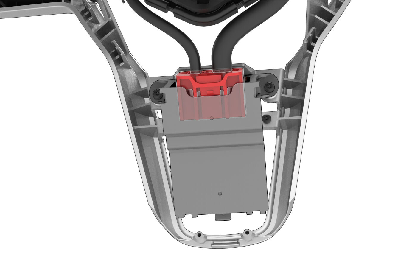 - Disconnect the electrical harness from the steering wheel controls ECU connector.