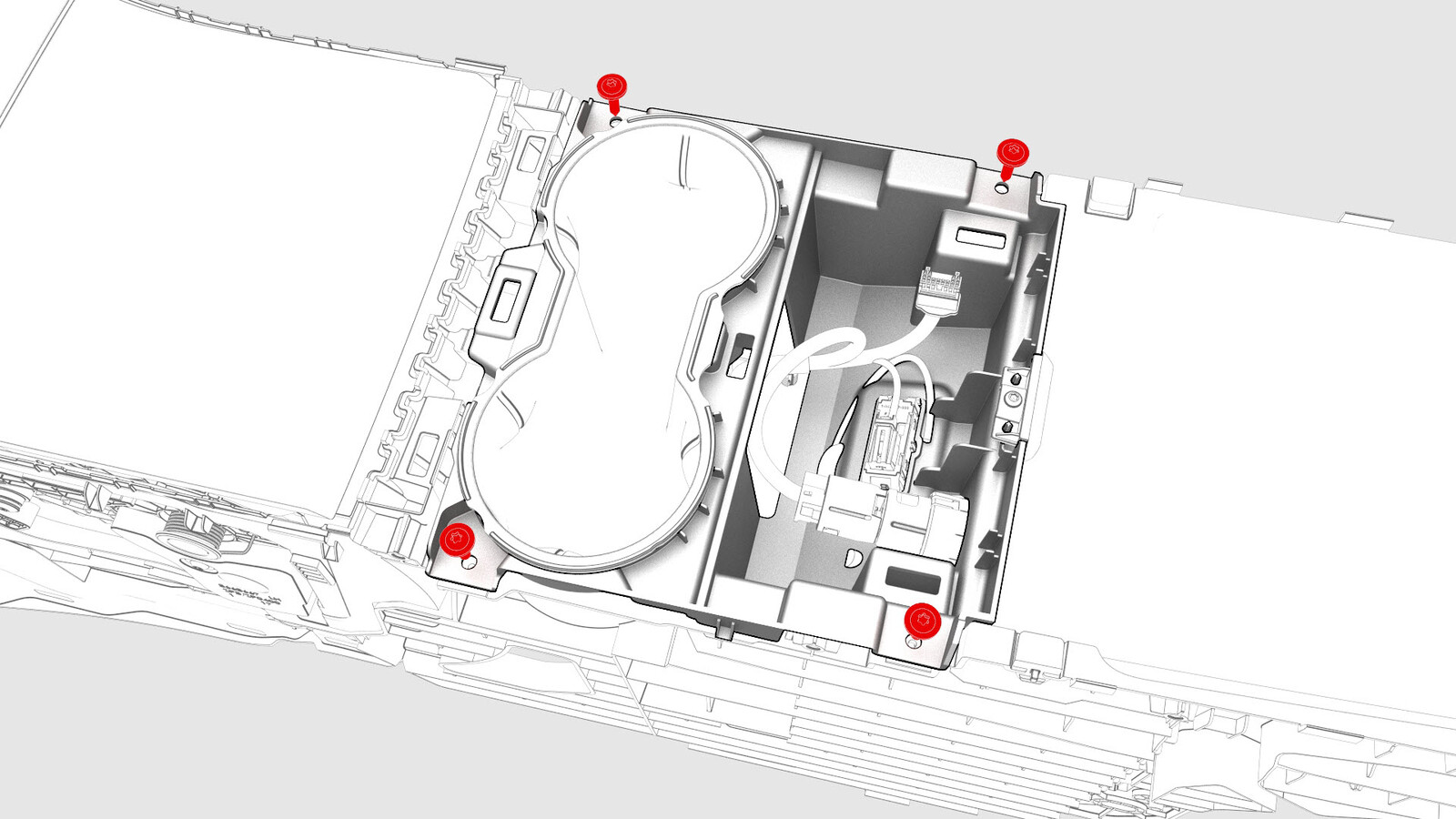 | Screws that attach the cup holder lower assembly to the center console |
