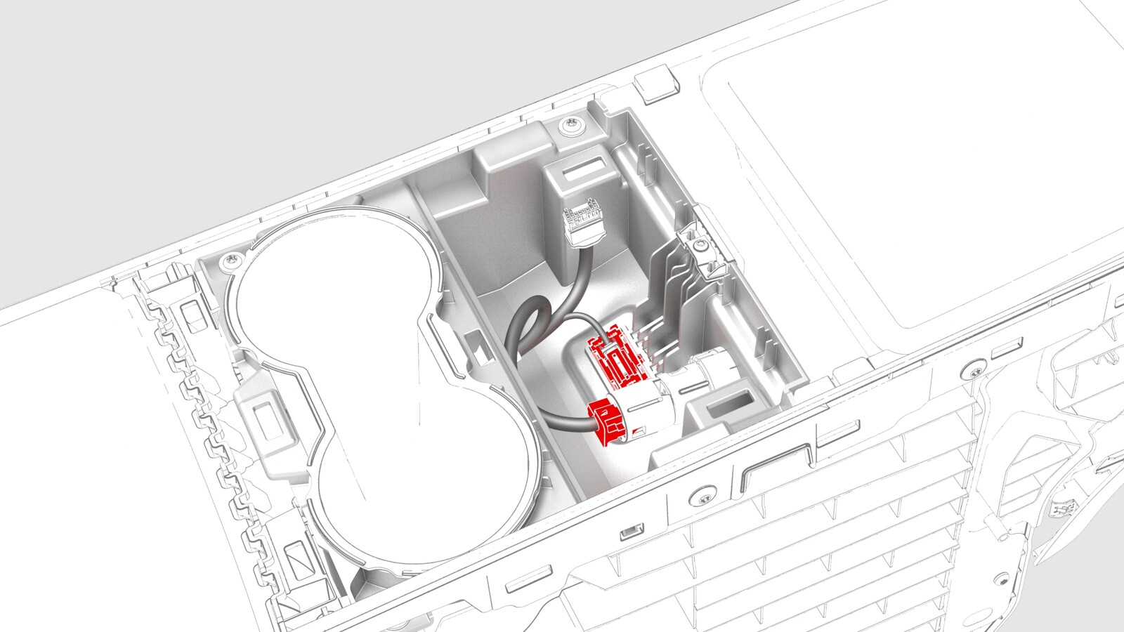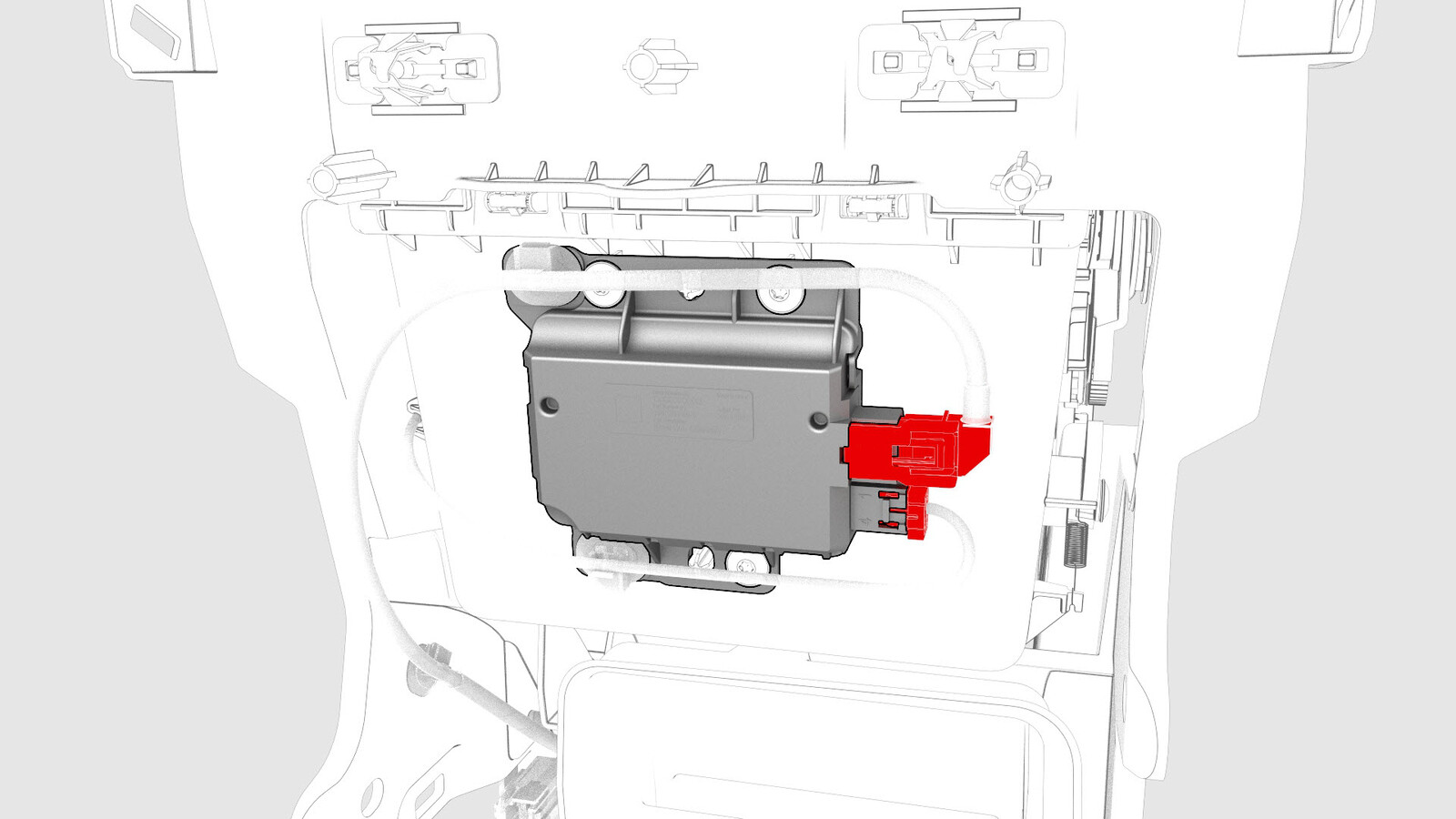 - Disconnect the electrical connector from security controller, and then remove the cup holder decor.