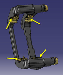 - Apply an even layer of Silaramic lubricant to the top and bottom of the LH brake pad contact points.