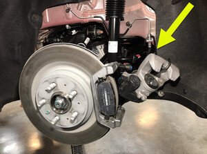 - Remove the LH rear caliper from the assembly, and then support it with an S-hook in a secure location.