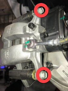 | Bolts (x2) that attach the LH rear brake caliper bracket to the LH rear knuckle |