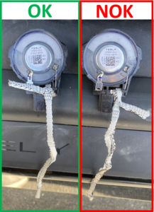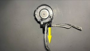- Secure the tether to the LH front door tweeter with the same routing noted during removal.