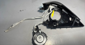 Position the LH front door tweeter onto the tweeter carrier, route the tether into the carrier, and then secure the clips (x3) that attach the tweeter to the carrier.
