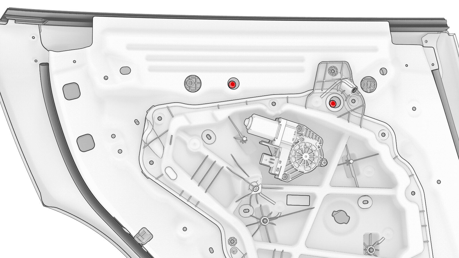 - Remove the rear LH door glass. See Glass - Door - LH - Rear (Remove and Replace).