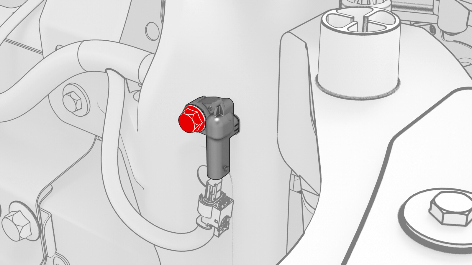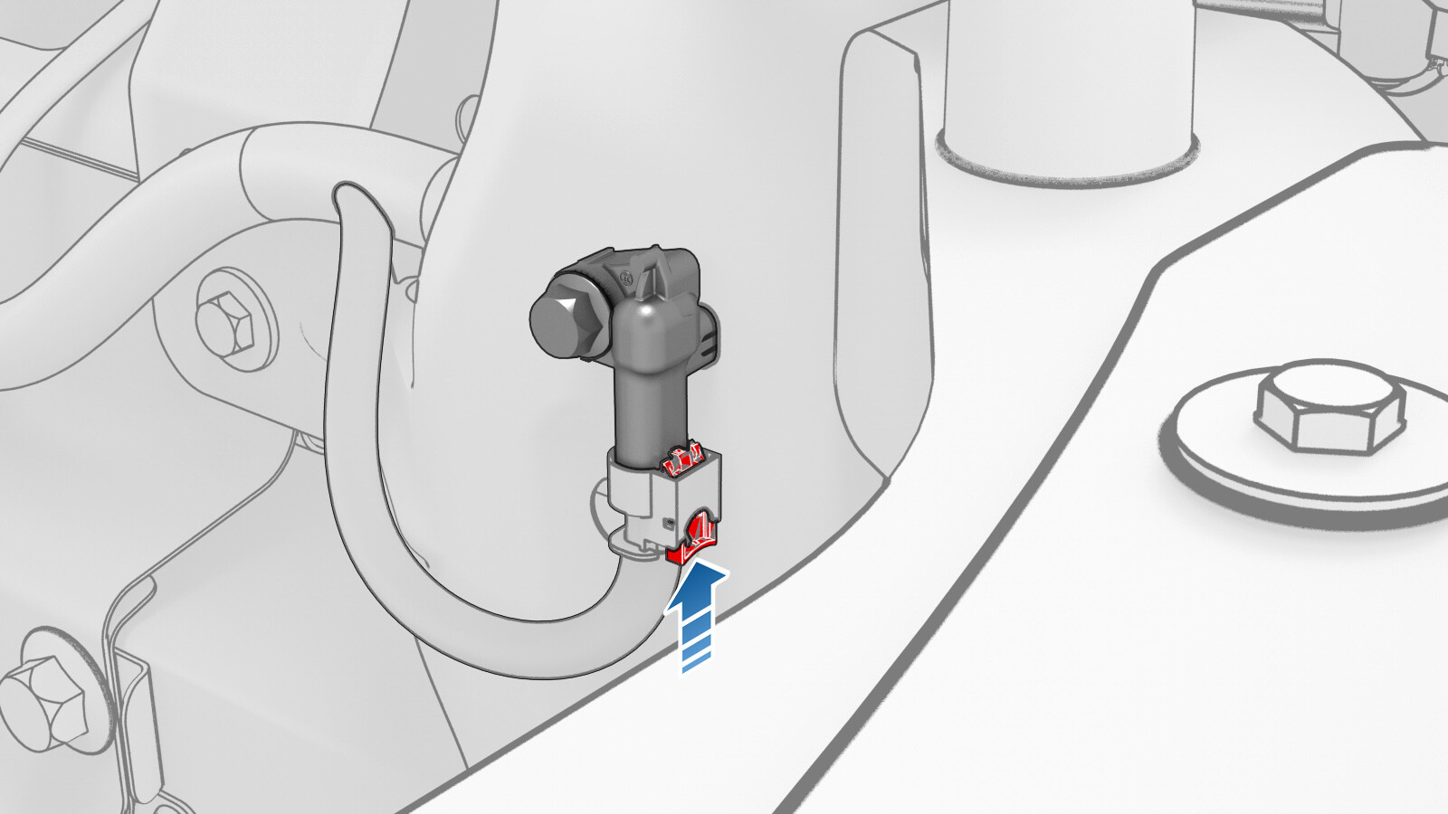 - Disconnect the electrical connector from the shotgun accelerometer sensor by pulling out the tab and then releasing the electrical connector.