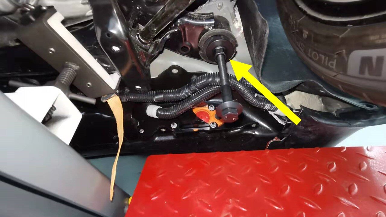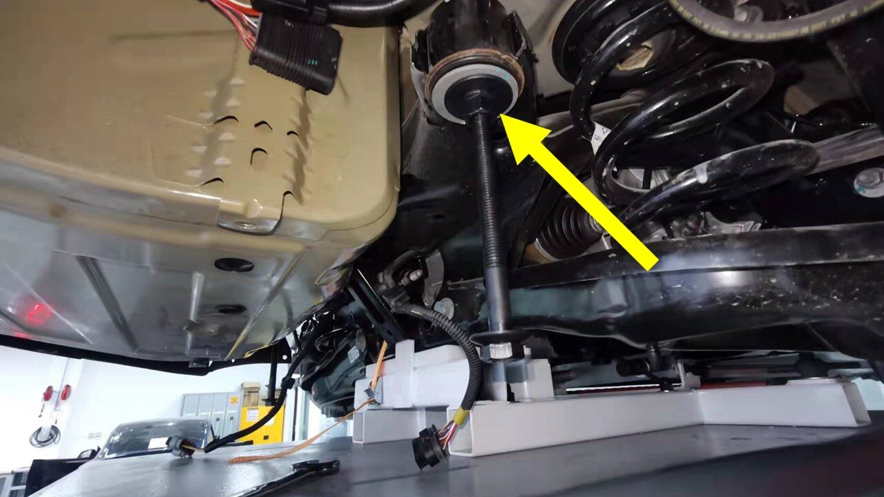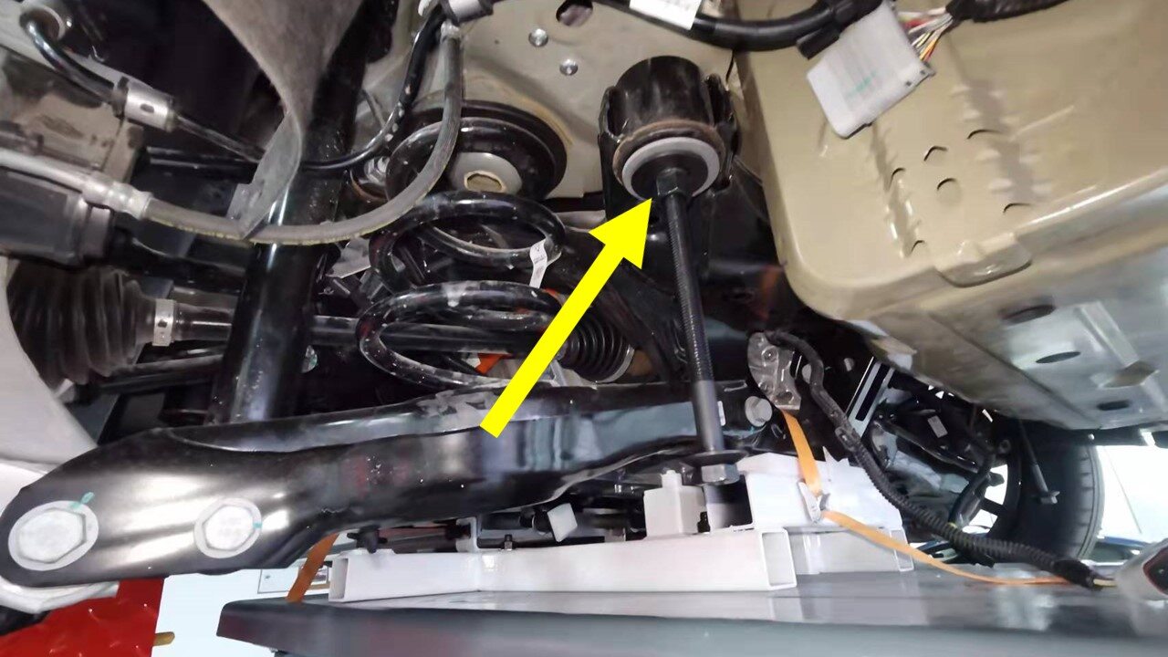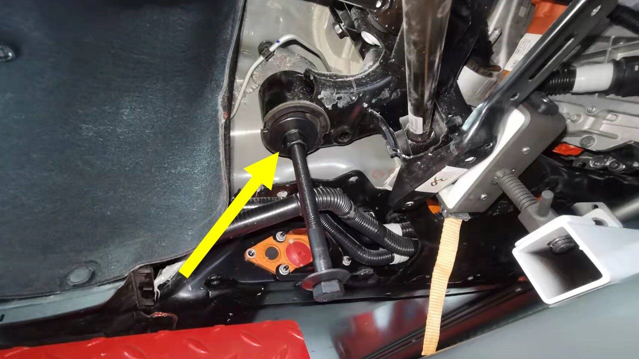 - Remove subframe lifting tool from underneath vehicle