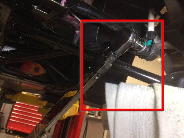Torque nut securing RH rear stabilizer bar end link to stabilizer bar