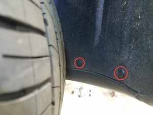 Remove clips securing RH rear wheel liner to rear fascia assembly
