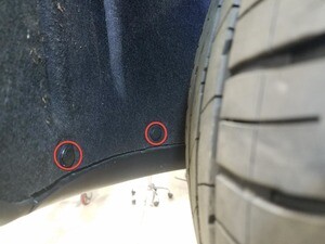 Remove clips securing LH rear wheel liner to rear fascia assembly