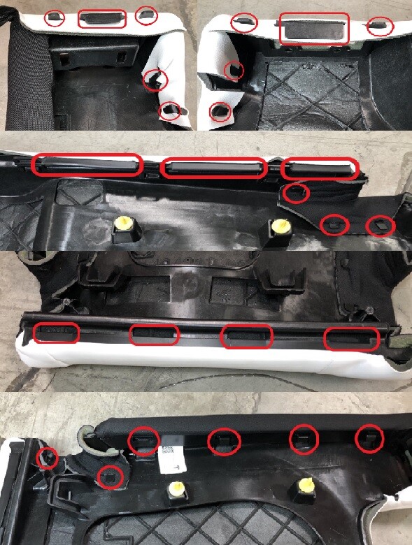 Tip: Push the clips in with pliers while applying outward pressure to the backrest.